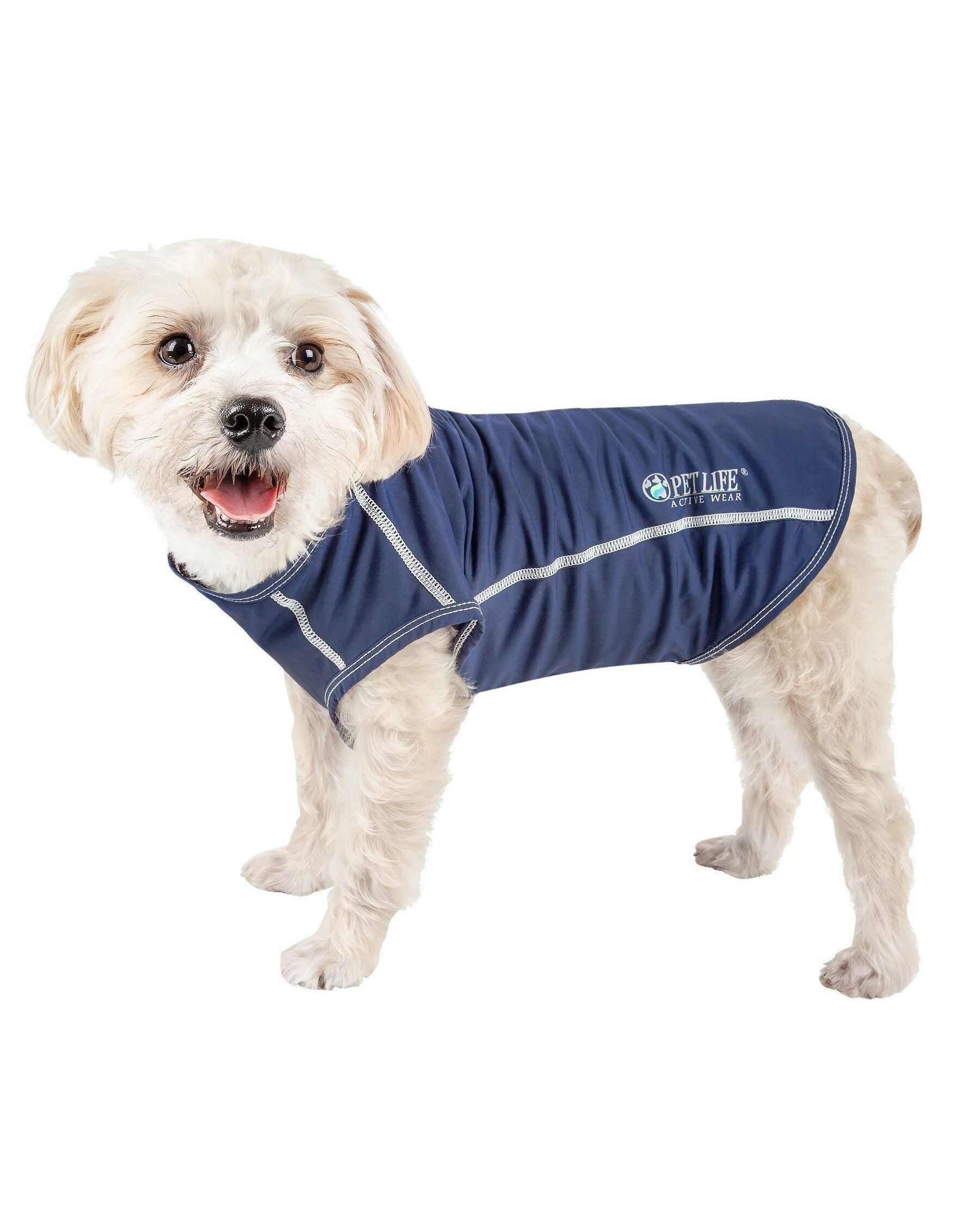 The Pet Life ® Active 'Racerbark' 4-Way-Stretch Yoga Fitness Dog T-Shirt and Tank Top is comprised of a Lightweight and Stretchy Yoga-like Performance fabric that maximizes Mobility and Comfort. Features 4-Way Stretch Construction that moves better in every direction with a customized fit that's further than next to skin or Fur without the squeeze and won't bunch up. This specially formulated stretchy Micro-Fiber features a higher-grade of Elasticity that won't ever lose it's shape and is Permeable which provides Breath-ability. This Smooth-to-the-touch fabric features Quick-Drying properties that repels body moisture or sweat and features Anti-Odor technology that assists with odor causing microbes. The Racerbark Dog Tank Top is also UV Protectant against the suns harmful rays and strategically fitted to help assist in containment of shedded hairs. Perfect for fitness and Dog Yoga activity this performance dog t-shirt also features a Dual-Reinforced stitching at every seam for added durability with a Pull-Over design for easy on and off access and Reflective-Taping for added night visibility. Machine Washable. This style is part of our Pet Life ® Activewear Collection. Available in Multiple Sizes and Colors. SIZING SPECIFICATIONS - In (Inches) "Back" Length is from Neck to Tail - * See image chart for sizing approximation. EXTRA SMALL - Back - 9.63" Chest - 12.75" Neck - 9.5" SMALL - Back - 10.63" Chest - 15.75" Neck - 12.5" MEDIUM - Back - 14.63" Chest - 19.75" Neck - 14" LARGE - Back - 18.63" Chest - 24.75" Neck - 16.5" EXTRA LARGE - Back - 21.63" Chest - 29.75" Neck - 19.5"