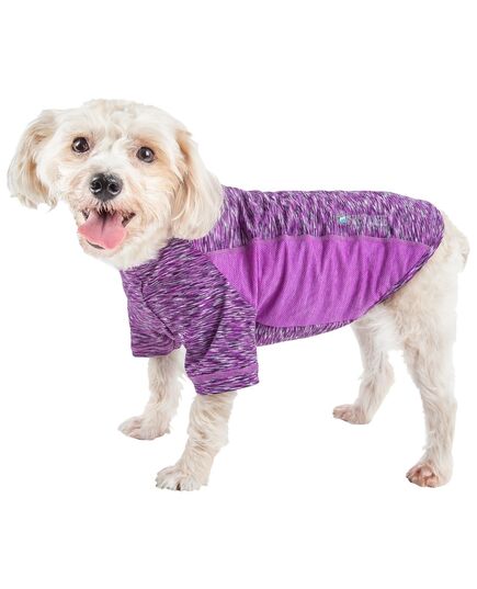 The Pet Life ® Active 'Warf Speed' Heathered Ultra-Stretch Yoga Fitness Dog T-Shirt features a Dog Yoga complex performance structure comprised of premium blended stretchy fabrics with a sided strategic ventilation system with breathable Micro-panels that focus at the source of perspiration to help maximize Breath-ability during movement. Features 4-Way Stretch construction that moves better in every direction with a customized fit that's further than next to skin or Fur without the squeeze and won't bunch up. The top layer features a specially formulated stretchy elastic and breathable performance Micro-fibers that are also lightweight and stretchy. Features Quick-Drying properties that dries really fast that repels body moisture or sweat while offering Anti-Odor technology that assists with odor causing microbes. The Warf-Speed T-shirt also offers UV Protection against the suns harmful rays and fitted perfectly to help assist with containment of shedded hairs. Design features Dual Reinforced stitching at every seam for longevity and durability with a Pull-over design for easy on and off access and Reflective-Taping for added night visibility. Machine Washable. This style is part of our Pet Life ® Activewear Collection. Available in Multiple Sizes and Colors. SIZING SPECIFICATIONS - In (Inches) "Back" Length is from Neck to Tail - * See image chart for sizing approximation. EXTRA SMALL - Back - 9.5" Chest - 13.5" Neck - 9.5" Sleeve - 6.5" SMALL - Back - 11.5" Chest - 16.5" Neck - 12.5" Sleeve - 7" MEDIUM - Back - 14.5" Chest - 20.5" Neck - 14" Sleeves - 7.5" LARGE - Back - 18.5" Chest - 25.5" Neck - 16.5" Sleeve - 8" EXTRA LARGE - Back - 21.5" Chest - 30.5" Neck - 19.5" Sleeve - 8.8"
