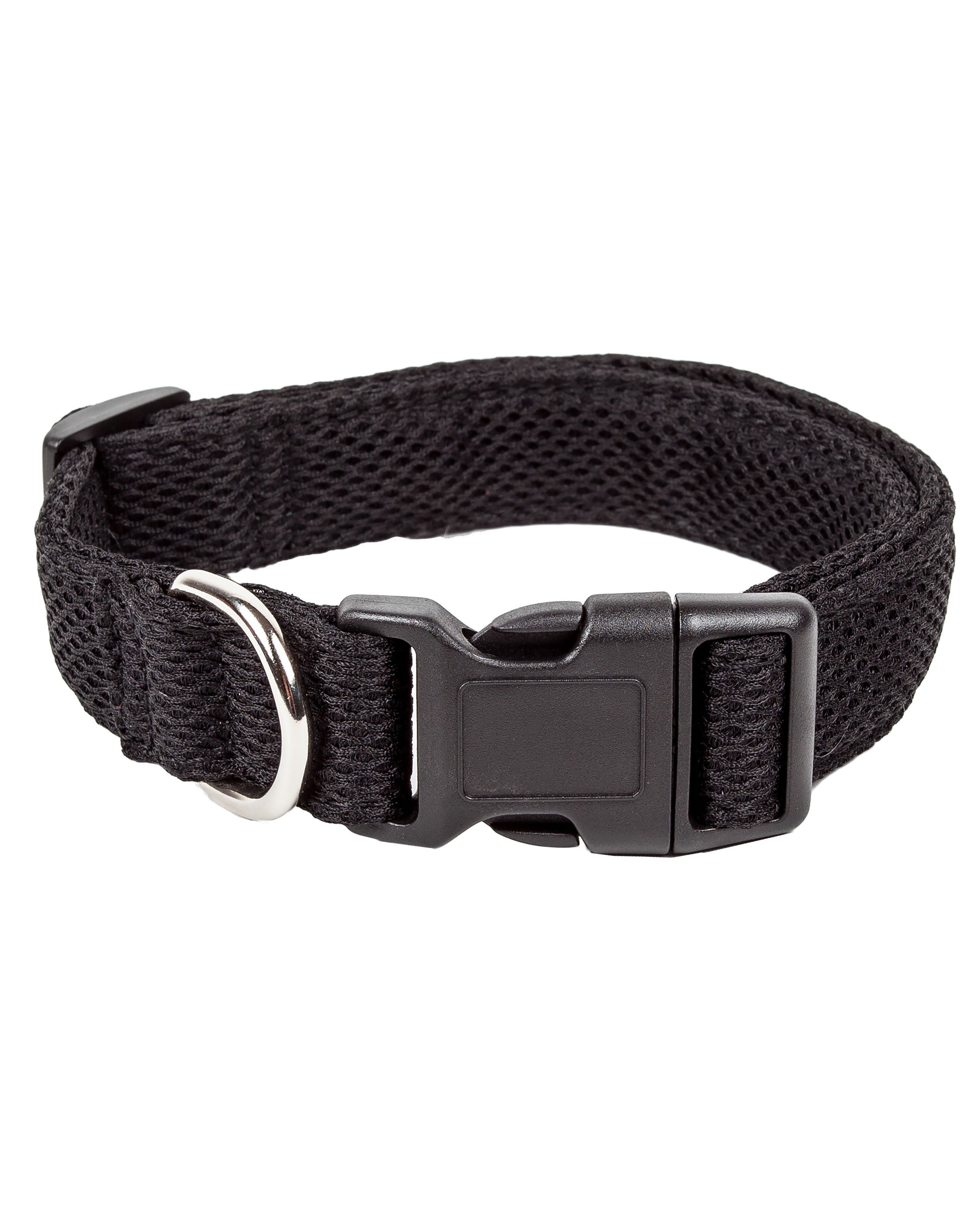 The Pet Life ® 'Aero Mesh' Dual-Sided Breathable and Adjustable Thick Mesh Dog Collar offers complete comfort and ventilation. This adjustable collar for dogs features Dual-sided premium Micro-Mesh plush fabrics that are fused together to create exceptional Breath-ability. Superior in comfort as compared to conventional Nylon or tougher-grade fabrics that lay around the neck, and the collar gently cuddles and places less stress around the neck area. These Mesh Dog Collars feature an Ultra-Sturdy Buckle Clip with a protective mesh layer preventing hairs from getting caught or pulling and a reinforced Stainless steel leash connecting ring meant to withstand high tug pressure. Collar is 100% Water-resistant and Machine Washable. This Adjustable Collar for Dogs is Available in Multiple Sizes and Colors, Matching Leash or Lead Sold Separately. SIZING DIMENSIONS - In Inches. SMALL - Neck Circumference - 11" - 15.8" MEDIUM - Neck Circumference - 13.4" - 19.8" LARGE - Neck Circumference - 14.9" - 23.2"