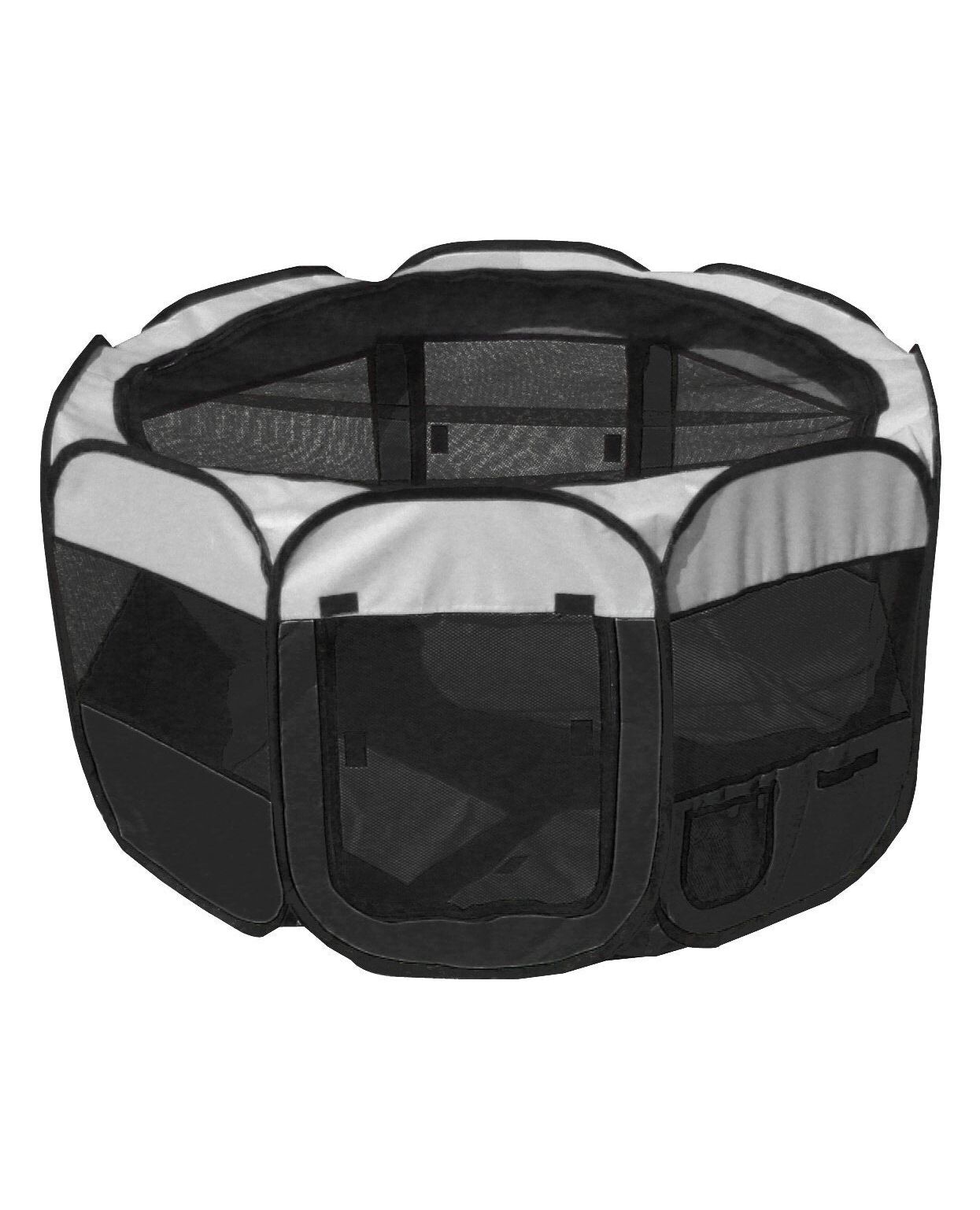 The Pet Life 'All-Terrain' Lightweight Easy Folding Collapsible Travel Dog Play Pen is composed of High-Grade Mesh and Scratch-Resistant Nylon Fabrics. These Pet Playpens feature 360 Degree view of Sunview and in-addition features a larger Velcro-Pouch for any such belongings. This Collapsible Dog Playpen also features an above top Removable Mesh Netting preventing your pet from jumping out of the Pet Play Pen. This Dog Playpen also features a Mesh Zippered entrance along the side and Collapses and Folds to 4 inches thin. Great for both Indoor and Outdoor Settings. The Portable Dog Playpen also features a handle bar for dragging purposes and comes with an Over-The-Shoulder Scratch-Resistant Ballistic Nylon case. This Dog Playpen Crate is Available in Multiple Sizes and Colors. SIZING DIMENSIONS - (INCHES) Length x Width x Height MD - 29 x 29 x 17 LG - 42 x 42 x 24