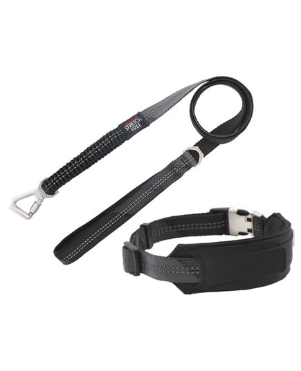 Pet Life ® 'Geo-prene' 2-in-1 Shock Absorbing Neoprene Padded Reflective Dog Leash and Collar is composed of Geometrically patterned Nylon webbing with Dual-Reinforced stitching and Neoprene padding by the collar and Leash handle for complete Durability and Comfort. The end portion of the Leash features a buffered and expandable looped elastic band that's designed to further place less tension around the neck while tugging or pulling for added comfort. Features reflective embedded stitching around the matching Dog collar and leash for complete night safety and visibility. Engineered and equipped with Metal Alloy engraved Quick-Connecting buckles on the collar and a unique and sporty swivel leash connector with a screw top mechanism that completely secures the leash and collar and provides a Multi-Directional pulling or tugging experience. Available in Multiple Sizes and Colors. Sizing Guide (INCHES) COLLAR AND LEASH DIMENSIONS - SMALL - LEASH LENGTH - 48" WIDTH - 0.59" NECK GIRTH - 13.38" - 15.74" MEDIUM - LEASH LENGTH - 48" WIDTH - 0.78" NECK GIRTH - 13.56" - 17.71" LARGE - LEASH LENGTH - 48" WIDTH - 0.98" NECK GIRTH - 15.74" - 20.47"