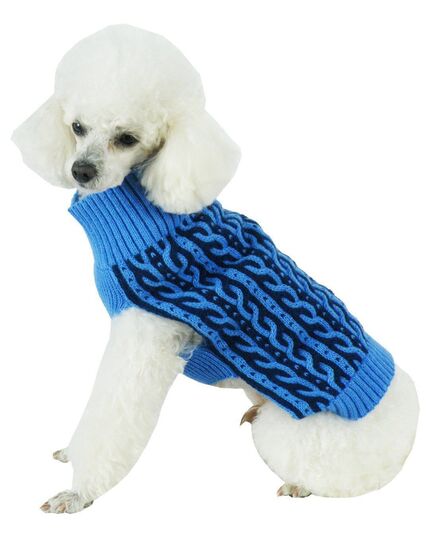 The Harmonious Dual Color Weaved Heavy Cable Knitted Fashion Designer Dog Sweater is composed of a Plush Soft Cotton and Acrylic blend. Features an easy pull over design that slips on for easy On and Off access. This Pet Sweater is furthermore Machine Washable and features an Ultra Cozy Turtle neck along the top and a stylish weaved design along the back side. Keeps your Pet warm and comfortable during those colder winter climates and warm during those chilly summer night strolls. Available in Multiple Sizes and Colors. Sizing Guide - From Back of Neck to Tail area ("In" Inches) 8" - EXTRA SMALL 10-12" - SMALL 14-16" - MEDIUM 18-20" - LARGE