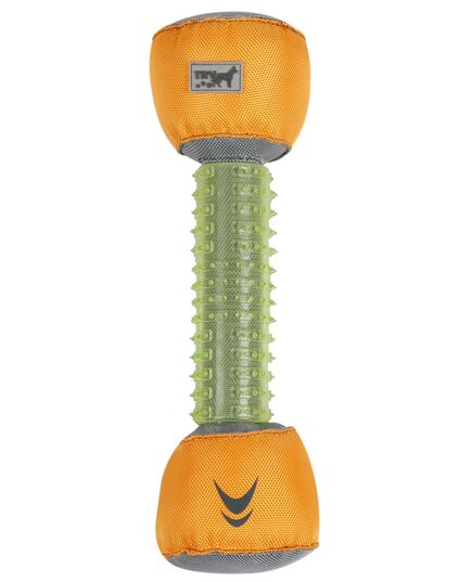 The Pet Life ® 'Hoist-a-Fetch' Nylon and Rubber Floating Dental Dog Toy features a sporty barbell shaped bone that's composed of high-grade chew-tough Nylon that's enclosed inside a centered TPR Rubber-like material that's is lightweight with strong resistance to bite. The centered TPR material features bumps and crevices that help clean and brush teeth while massaging gums in providing dental stimulation. The Hoist-a-fetch toy completely floats in water and is great for fetch play. Available in Multiple Colors. SIZING DIMENSIONS - (INCHES) L x W x H 13 X 3.54 X 3.54