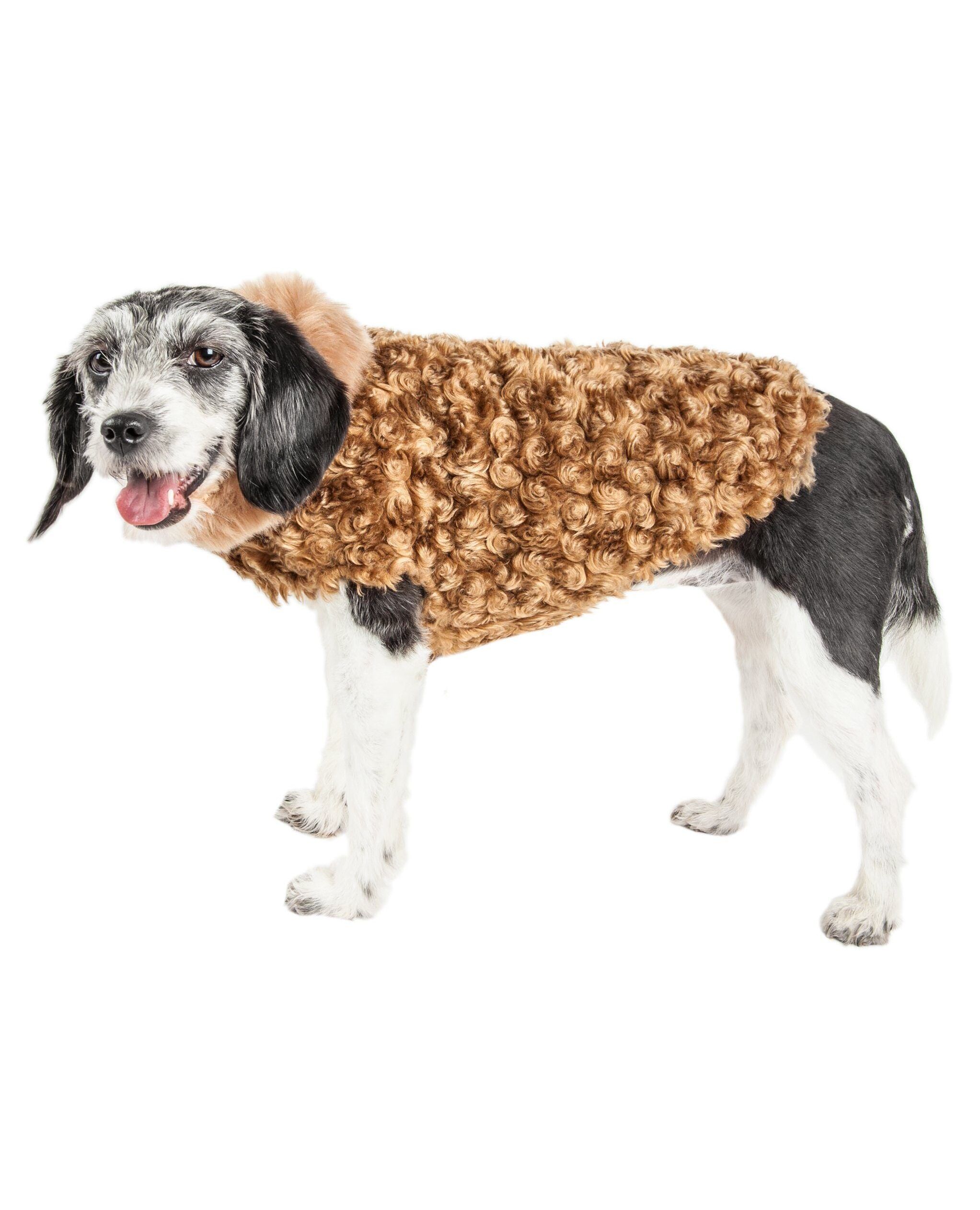The Pet Life ® Luxe 'Furpaw' Shaggy Elegant Fashion Designer Fur Dog Coat features a Luxurious Golden-Brown Shaggy-Ruffled Body Pattern along the back side and Reversed with accented Polar Fleece and Inner-lined with a high-grade Poly-fill for added warmth and comfort with an accented trendy Faux-Fur collar. Features Tough-Grade across-the-body Velcro Belly Enclosures for convenient on and off access and a leash slit below the Neck line. This dog jacket is part of our Pet Life ® Luxury collection. Available in Multiple Sizes. SIZING SPECIFICATIONS - In (Inches) "Back" Length is from Neck to Tail - * See image chart for sizing approximation. EXTRA SMALL - Back - 9.1" Chest - 17.3" Neck - 12.2" SMALL - Back - 11" Chest - 21.3" Neck - 13.8" MEDIUM - Back - 13.8" Chest - 24.4" Neck - 15" LARGE - Back - 18.1" Chest - 29.9" Neck - 16.9" EXTRA LARGE - Back - 22.8" Chest - 35.4" Neck - 18.9"