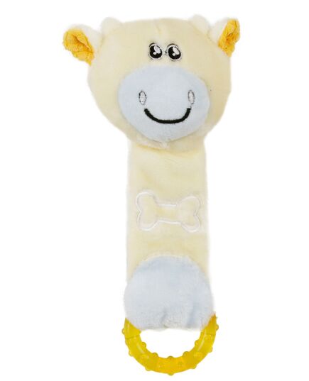 Pet Life Moo-Born' Plush Squeaky and Crinkle Newborn Rubber Teething Cat and Dog Toy