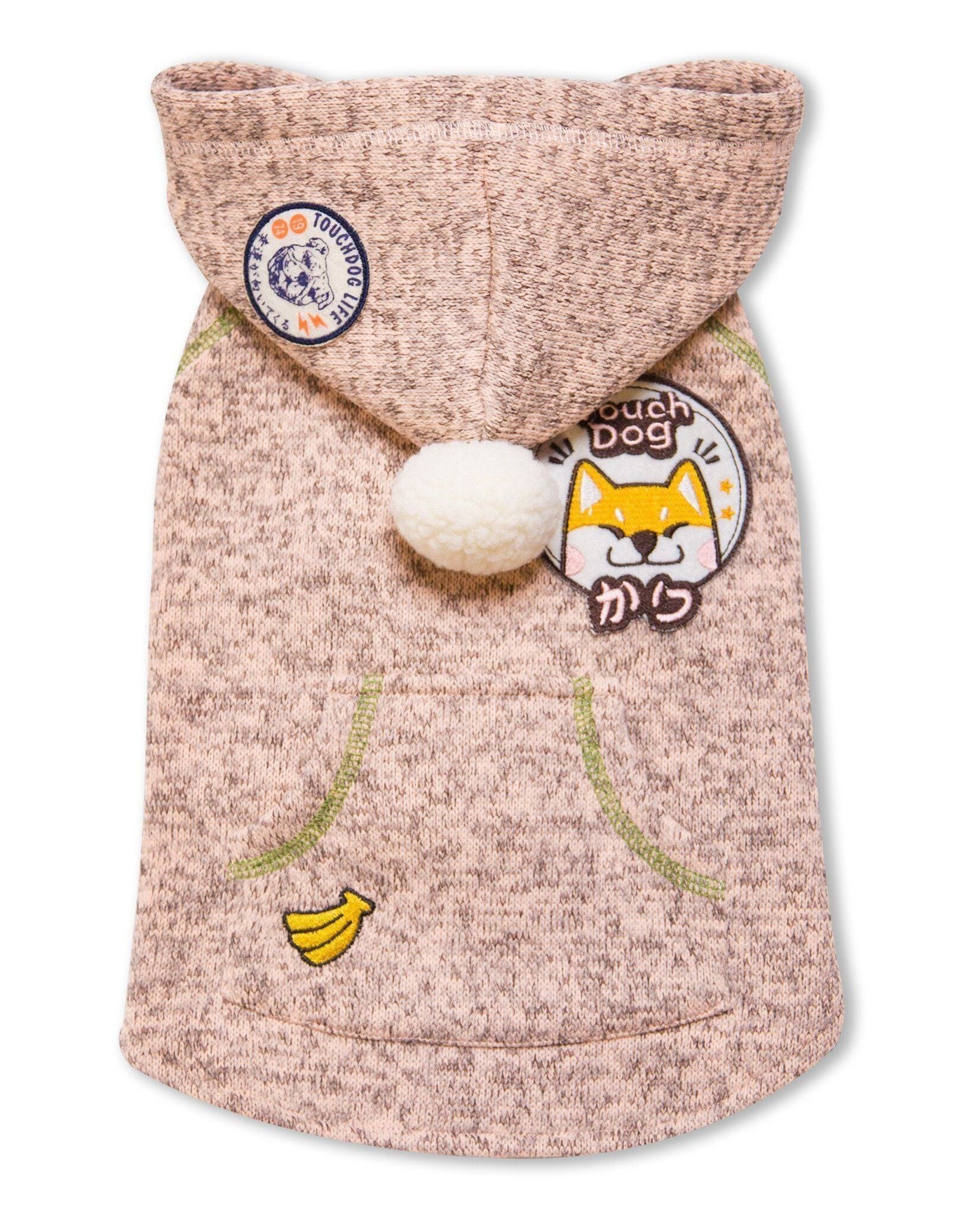 The Touchdog ® Hippie Embellished Sleeveless Pompom Hooded Fashion Dog Sweater is composed of a blended soft cotton and polyester shell. Outer shell is further sand blast treated for an added softer feel. This dog hoodie is decked out in accented button trims and embroidery with designer patches along the back. Nice sleeveless street-style look with a fun pompom at the tip of the hood and tubed stitching around the shoulder areas with a bridge connecting pocket at the back and a leash slit along the neck area. Machine washable. Available in Multiple Colors and Sizes. Sizing Guide - From Back of Neck to Tail area ("In" Inches) 8" - EXTRA SMALL 10-12" - SMALL 14-16" - MEDIUM 18-20" - LARGE 22-24" - EXTRA LARGE