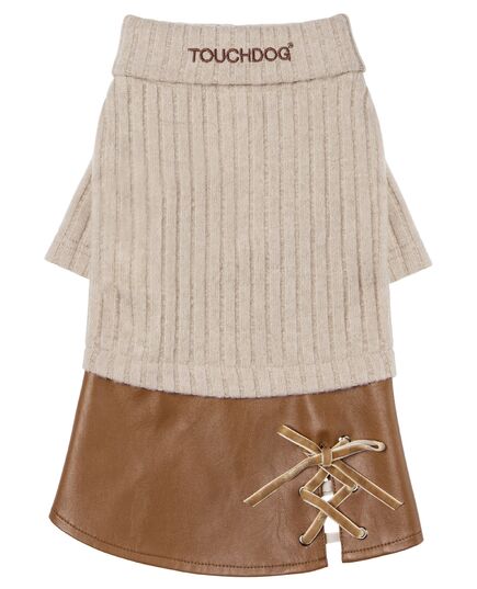The Touchdog ® 'Modress' Fashion Designer Dog Sweater and Dress features a One-Piece Heavy linear Cable-Knitted sweater that is stitched into a Leatherette skirt that features magnificent knot trim details. The top sweater features embroidery along the dual-layered turtle neck for added warmth and comfort. Together this one-piece set features an elegant yet modest twist to both a dress and a dog sweater that looks fashionable and comfortable. Available in Multiple Sizes and Colors. Sizing Guide - From Back of Neck to Tail area ("In" Inches) 8" - EXTRA SMALL 10-12" - SMALL 14-16" - MEDIUM 18-20" - LARGE.