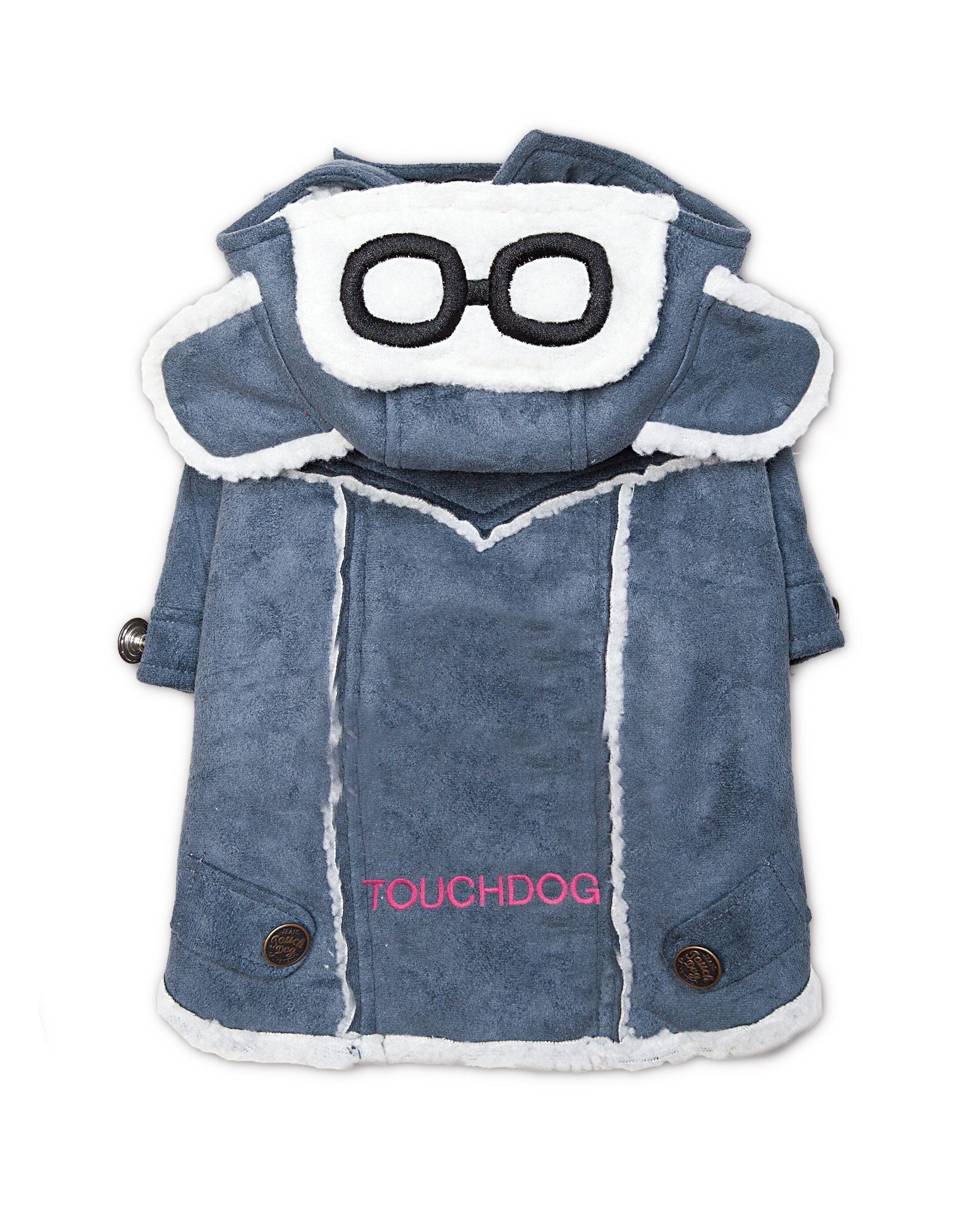 The Touchdog 'Tuskegee' Aero-Vintage Designer Fashion Winter Dog Coat is inspired by the official World War II aviation uniforms worn during U.S. combat. This Dog Jacket features a soft seude-like Exterior Shell with Sherpa Inner-linning that is reversed onto the back stitching. Detailed with a designer hood with etch-embroidered vintage aviation glasses and earmuffs, and engraved buttoned trims with a cross-jaw strap for added warmth. Available in Multiple Sizes and Colors. General Sizing Guide - From Back of Neck to Tail area ("In" Inches) 8" - EXTRA SMALL 10-12" - SMALL 14-16" - MEDIUM 18-20" - LARGE 22-24" - EXTRA LARGE. Sizing Specifications - (In Inches). XS - 8.3" Length, 17.7" Chest Girth, 12.2" Neck Girth SM - 11.8" Length, 21.7" Chest Girth, 13.7" Neck Girth MD - 15" Length, 24.4" Chest Girth, 15.8" Neck Girth LG - 18.9" Length, 29.9" Chest Girth, 16.9" Neck Girth XL - 22.8" Length, 34.7" Chest Girth, 18.9" Neck Girth