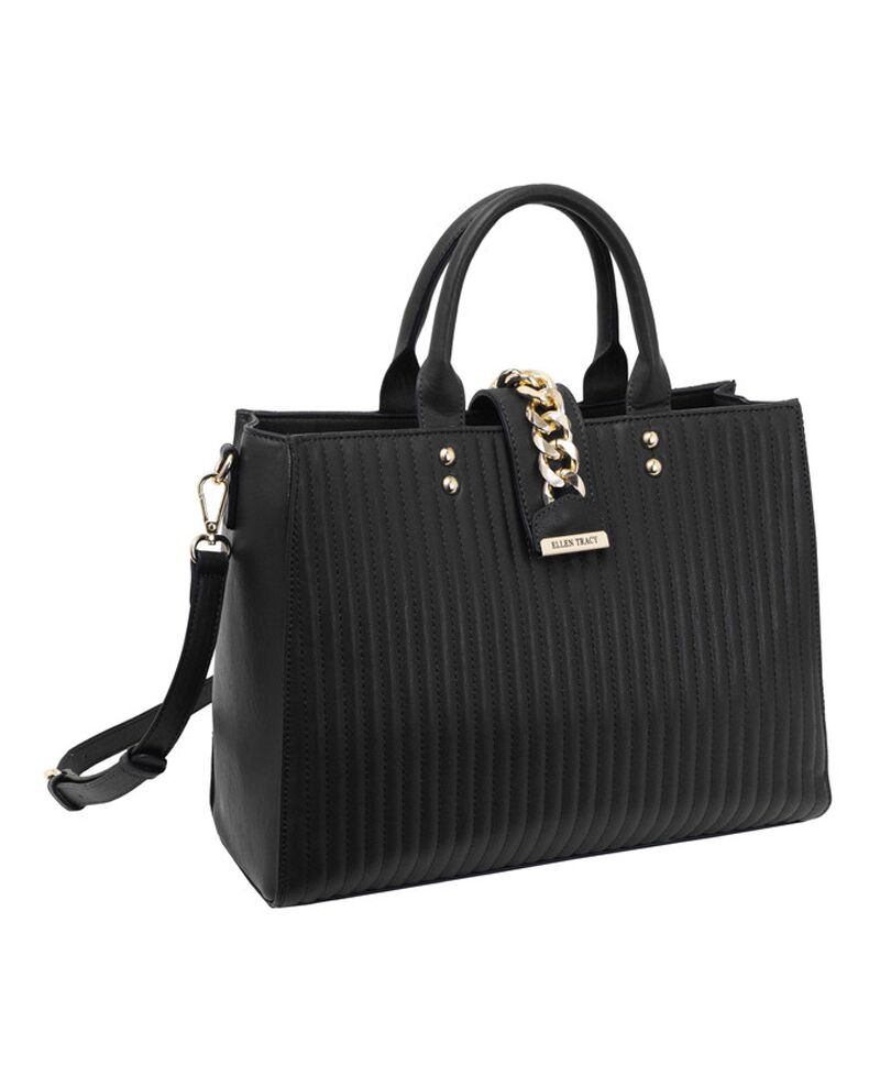 Quilted Double Handle Satchel - (Black)