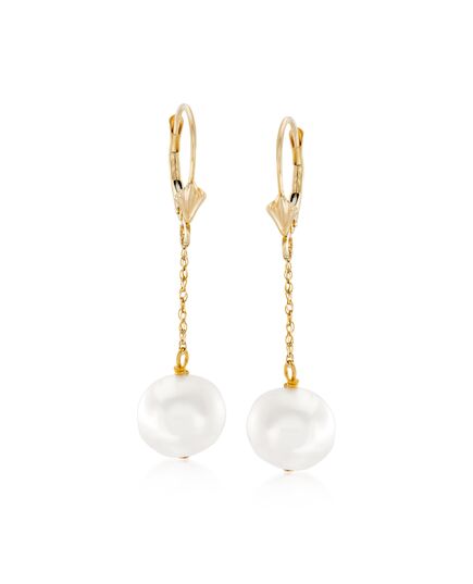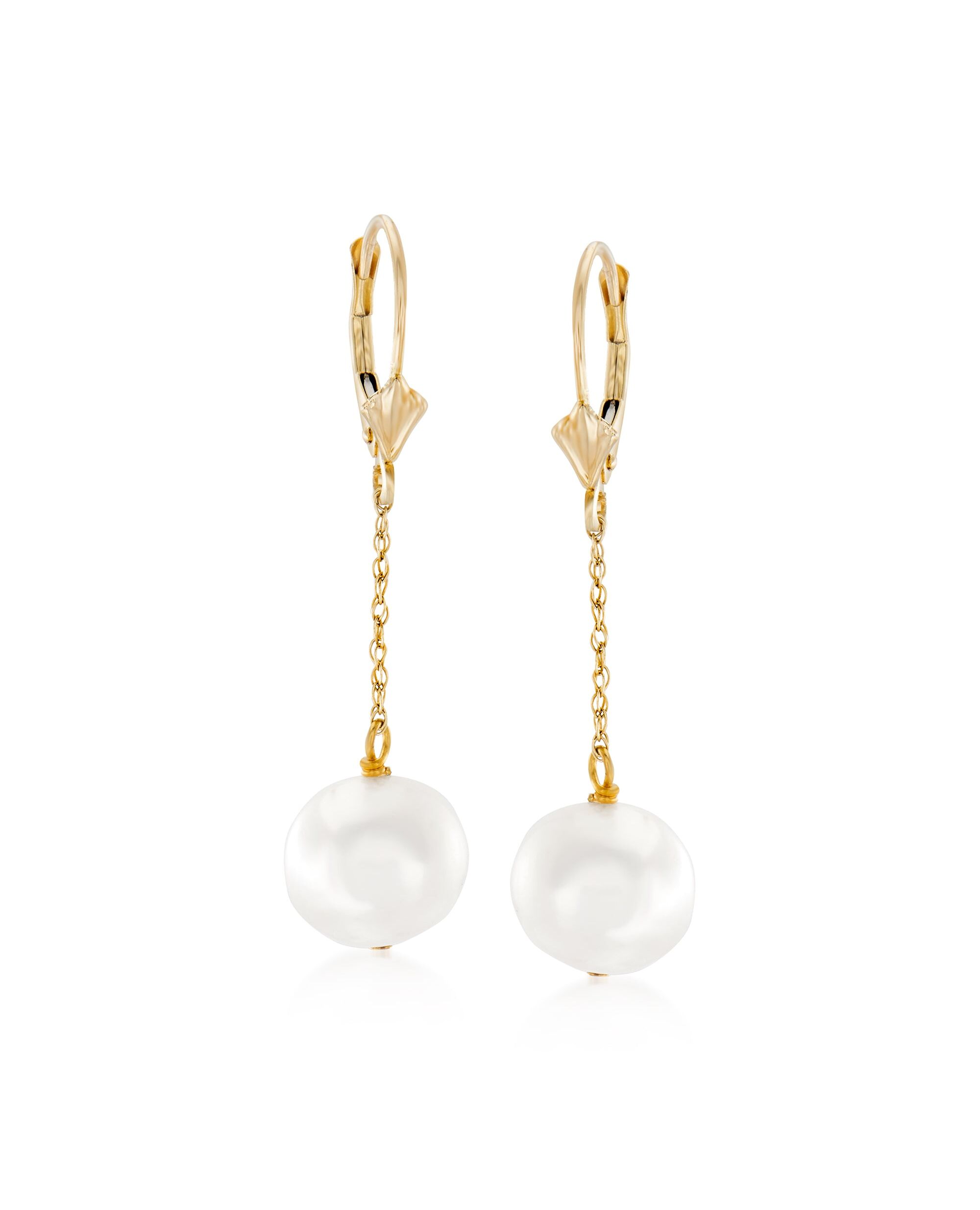 Ross-Simons 10-10.5mm Cultured Pearl Drop Earrings in 14kt Yellow Gold