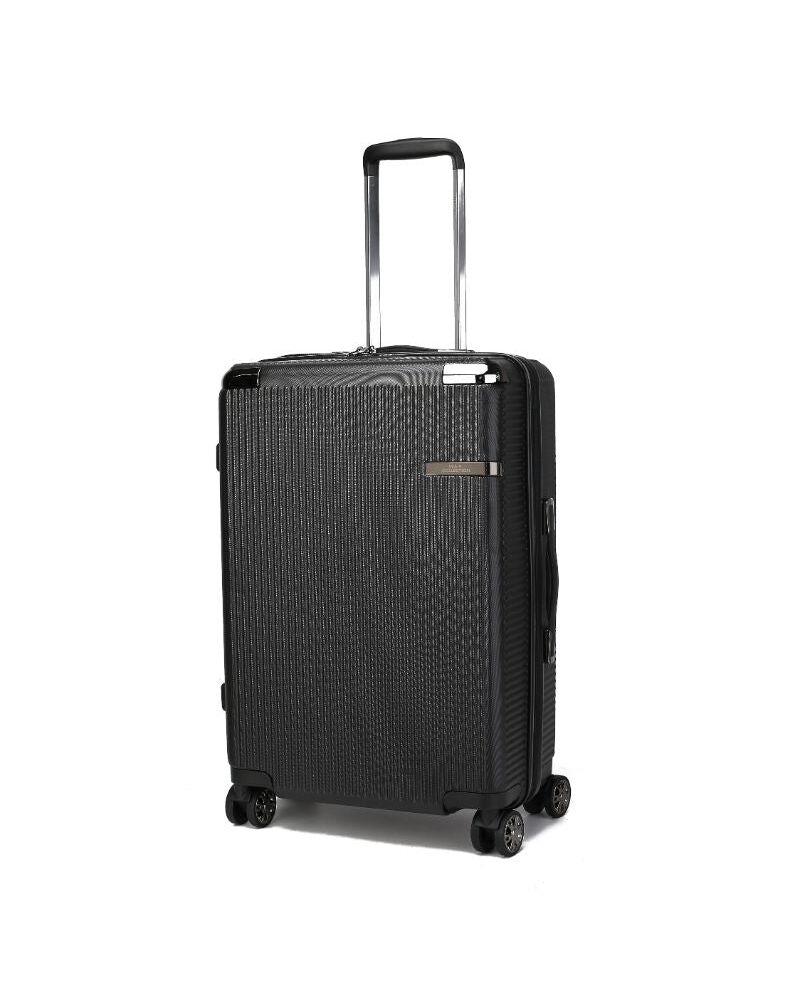 An ultra-modern shape, lightweight yet durable and cutting-edge features, define Mia K.’s Tulum luggage collection. Remarkably robust and surprisingly lightweight, this timeless classic is an unparalleled example of craftsmanship and innovation. The Tulum 24" spinner suitcase , is designed with a hard polycarbonate shell that has a highly scratch-resistant texture to keep your suitcase beautiful trip after trip. The telescopic handle with push button lock engineered for seamless adjustment insures maximum comfort and smooth maneuverability. Additional features include, 360° degree dual spinner wheels, grip handle on top and side for easy lifting. Aluminum corner armor as well as stylish smooth zippers. Travel with comfort and style with the Tulum luggage collection. Measurements - H-22.5” W-15.5” D-9” DETAILS - Durable polycarbonate material 360 degree dual spinner wheels Grip handles on top and side Elegant zipper pullers Telescopic handles with push button lock Fully lined interior Detachable tie down straps Inside zipper with mesh pocket Aluminum corner armor 4 non-slip rubber feet