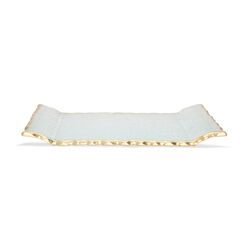 This glass tray serves as an elegant piece to enhance your dining experience. Whether its an everyday dinner or an elegant affair, this tray is designed with some gold glossy rim to add an uplift feel. It can be filled with miniatures, desserts, or any confectionaries.