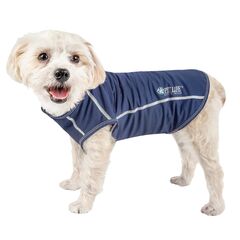 The Dog Helios ® Thunder-crackle Adjustable and Reflective Full-Body Waded Winter Dog Jacket is Inner-lined with exclusively developed Blackshark Technology, this innovative fabric is Lightweight, Waterproof, Windproof, Snow proof, Breathable, Cold-Repellent, Impermeable and Tear Resistant. Meant to withstand the harshest weather conditions possible, whether you're caught in a Blizzard, Typhoon, Hurricane or Rainstorm this is the premiere premium plush protective Dog Jacket of it's kind. The Exterior shell is composed of a Plush-Wadded high Poly-Filled exterior that is Double-Waterproofed, Windproof, Breathable, Tear proof fabric and features surrounded 3M Reflective lining for emergency visibility. The interior features a thick layer of Extremely High-Quality warm-protective and thick Anti-Static fleece which is extremely breathable and offers a fantastic ventilation system. Perfect for High-Altitude Mountaineering or any extreme activities. These Dog Jackets feature adjustable straps by every leg and features auto-adjustable built-in inner tubed lining. Additionally, this dog coat features above-top zippers for dog placement and Velcro enclosures that completely prevents any wind from entering while preventing any pulling of the dog's hair. Features a leash slit above the neck area and accented Embroidery and a print on the Outer shell. Get Outdoors with Dog Helios! Available in Multiple Colors and Sizes. Sizing Guide - From Back of Neck to Tail area ("In" Inches) 8" - EXTRA SMALL 10-12" - SMALL 14-16" - MEDIUM 18-20" - LARGE 22-24" - EXTRA LARGE