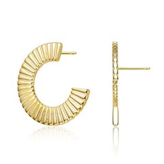 Elegant 14K Gold Plated Ribbed Hoop Earrings. These earrings feature an interesting open-circle ribbed design. Crafted of 14K Gold Plating and secure with butterfly closure. Makes a great gift as well.Measurement 25.4mm