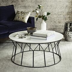 Reminiscent of a vintage design classic, this contemporary coffee table is an investment. Ideal for the modern interior, its generous smooth top features a timeless neutral grey palette, while the sleek lines of its iron base ensure a lightweight feel.