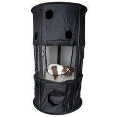 The Pet Life Climbertree circular obstacle collapsible travel Cat House is composed of heavy duty Nylon and mesh. The Climbertree is easy to install or setup compared to the bulkier conventional cat houses. Perfect for Travel, Indoor or Outdoor usages, simply folds and collapses and features durable collapsible fiberglass poles that easily attach to the 4 corners to hold up it's structure. Features an array of multiple zippered and circular entrances for interactive play on both the bottom and secondary levels. Great for lounging or interior play. Available in Multiple Colors. SIZING MEASUREMENTS (INCHES) LxWxH - 13.2 x 13.2 x 40.23