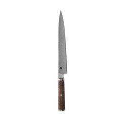 The Miyabi Black 5000MCD is a true work of art. The blade is constructed of micro-carbide powdered MC66 steel, which is ice-hardened to an impressive 66 HRC. This results in an exceptionally sharp and lasting edge. The blade is wrapped in 132 additional layers of steel, resulting in a beautiful flower damascus pattern.The handle of the Miyabi Black series is made from unique wood, black ash. The grain and color of the black ash contrasts with the damascus of the blade. The handle is crafted in a traditional "D" shape, providing optimal ergonomics for fatigue-free cutting in the kitchen.Handcrafted in Seki, Japan. Blade consists of 133 layers of steel, resulting in a floral damascus pattern MC66 MicroCarbide steel is hardened to 66 HRC D-shaped handle made from stunning black ash Sharpened using a traditional, three step Honbazuke method Hand crafted in Seki, Japan