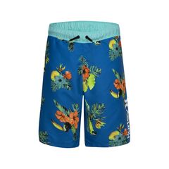 Color/Pattern - Neptune Blue Design Details - Elasticized Waist, Mock Fly, Non-Functioning Drawcord, Allover Floral Print, Back Flap Pocket, Built-In Mesh Liner For Full Coverage Slip-On Styling 100% Polyester Machine Wash Imported
