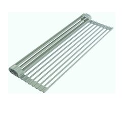 True & Tidy DR-881 Over-the-Sink Roll-up Drying Rack Dry your dishes, kitchen gadgets and vegetables and save space with this multi-purpose over the sink Roll-up Drying Rack. Made from silicone-coated steel, this unique drying rack rolls out to fit neatly over your standard sized kitchen sink so that water drips in to the sink, not all over your counter. The Roll-up Drying Rack is rust resistant, BPA free and rolls-up for easy storage. Multiple uses and dishwasher safe, the Roll-up Drying Rack can be used as a trivet, colander, prep station, and more. SPECIFICATIONS - Multiple uses - Trivet, colander, prep station and more Roll-up for easy storage Rust resistant, non-slip silicone surface BPA Free Dishwasher safe Heat resistant up to 400◦F