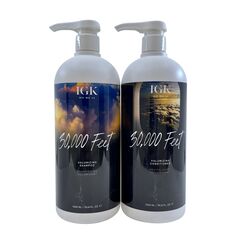 IGK 30,000 Feet Volumizing Shampoo & Conditioner Set gives your hair weightless and healthy volume. Made to be used by all hair types. Made with vegetable proteins and caffeine. Enhances shine, manageability, and protects your hair from styling and environmental damage. This is a vegan, cruelty free, paraben free, sulfate free, and mineral oil free product.