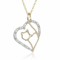 Ships within 1 dayLovely, elegant 1/10 cttw diamond cat and heart style pendant necklace in 14k yellow gold. The 21 sparkling natural round diamonds are prong set. Total carat weight is 1/10 cttw (0.10 cttw). Width of the pendant necklace is 17 MM (0.66 Inch) while the length is 23 MM (0.90 Inch). 18 inch chain and gift box is included with purchase of this pendant necklace.Stone Type - Natural DiamondMetal - 14k Yellow GoldStyle - Cat And Heart StyleDiamond Carat Weight - 1/10 cttw (0.10 cttw)Diamond Cut - RoundDiamond Color - I-JDiamond Clarity - I2-I3Number of Diamonds - 21Pendant Width - 17 MM (0.66 Inch) ; Length - 23 MM (0.90 Inch)Vir Jewels 14k Yellow Gold Pendant Necklace For Female AdultBirthstone Month - AprilChain Type - 18 Inch .925 Sterling Silver