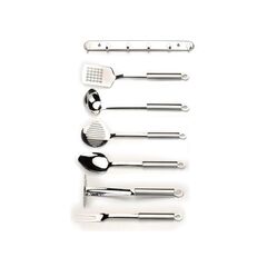 Set Includes - Serving Spoon, Potato masher, Slotted turner, Soup ladle, Meat fork, Skimmer, Revolving rack and wall rack to beautifully display your utensils on the wall or counter top. - Made of durable, easy to clean stainless steel. Material - High Quality Stainless Steeldimension - 5.31x8.85x17.7Use & Care Instruction - Hand wash RecommendedWarranty - Limited lifetime warrantyProduct Id - 1308055