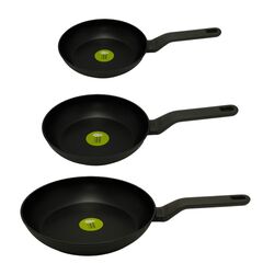 Whether you want to make breakfast for the entire family, brown a piece of meat or make a frittata, this 3 piece frying pan set is up for the job. With their aluminum body that guarantees a fast and even heat distribution and high-quality non-stick coating which allows you to cook with little to no oil, these pans ensure an efficient performance on any kind of stove, induction included. On top of that, the sturdy stay-cool handle that's soft to the touch provides a good grip so you can safely take the pan from the stove to the table for serving where the non-stick coating guarantees an easy food release. • 8" Fry Pan, 10” Fry Pan, 11" Fry Pan • Aluminum body ensures even heat distribution • Suitable for electric, glass and induction stovetops • High quality Ferno-Green, PFOA-Free, non-stick coating for an easy food release and effortless cleaning • Soft-touch and Stay cool handles for a safe and comfortable grip