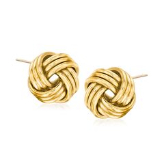 Ross-Simons is the authority on fashionable must-haves. These polished love knot stud earrings are a fashion classic. Wear them to work and then for a night out in town. Post/clutch, 14kt yellow gold earrings. Each Ross-Simons item arrives in a fine jewelry presentation box. Shop Ross-Simons jewelry risk-free as all items include a 30-day, 100% money-back guarantee.
