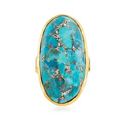 A trusted jeweler in 1952, Ross-Simons is dedicated to quality and value. This 15x30mm mosaic turquoise ring comprises multiple pieces of turquoise uniquely joined with copper and brass markings which emphasize the vibrant blue hue. Set in 18kt yellow gold over sterling silver and engraved with latticework on the band. Mosaic turquoise ring. Each Ross-Simons item arrives in a fine jewelry presentation box. Shop Ross-Simons jewelry risk-free as all items include a 30-day, 100% money-back guarantee.Stone InformationGem Type 1 - TurquoiseStone Cut 1 - Good-CutStone Color 1 - BlueStone Clarity 1 - BlueStone Shape 1 - Special-Cut-ShapeStone Creation Method 1 - NaturalStone Treatment Method 1 - Dyed, ImpregnatedStone Weight 1 - 0 CaratsNumber Of Stones 1 - 0
