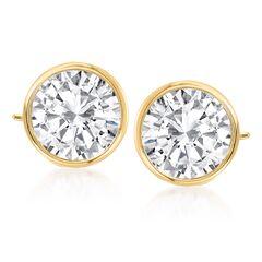 At Ross-Simons, we recognize the style power of versatile classics. A sparkling display of two round bezel set CZs make these 3.00 ct. t.w. CZ stud earrings the ideal choice for your busy life. Day-to-evening, you'll look great in them...all at a wonderfully affordable price, too. Set in 14kt yellow gold. Post/clutch, CZ stud earrings. CZ weights are diamond equivalents. Each Ross-Simons item arrives in a fine jewelry presentation box. Shop Ross-Simons jewelry risk-free as all items include a 30-day, 100% money-back guarantee.Stone InformationGem Type 1 - Cubic-ZirconiaStone Cut 1 - Good-CutStone Color 1 - ClearStone Clarity 1 - ClearStone Shape 1 - Round-ShapeStone Creation Method 1 - SyntheticStone Treatment Method 1 - Not-TreatedStone Weight 1 - 3.00 CaratsNumber Of Stones 1 - 2