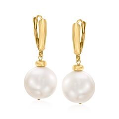 At Ross-Simons, we recognize the style power of versatile classics. At 11.5-12.5mm, these uncommonly large cultured freshwater pearls have the allure of prized South Sea pearls. Set in 14kt yellow gold in ultimate luxury. Hanging length is 1 1/4". Leverback, white pearl drop earrings. Each Ross-Simons item arrives in a fine jewelry presentation box. Shop Ross-Simons jewelry risk-free as all items include a 30-day, 100% money-back guarantee.Pearl InformationPearl Type 1 - Freshwater-CulturedPearl Minimum Color 1 - WhitePearl Lustre 1 - Medium-LusterPearl Shape 1 - Semi-RoundPearl Uniformity 1 - GoodPearl Surface Blemishes 1 - Moderately BlemishedPearl Stringing Method 1 - Moderately BlemishedSize Per Pearl 1 - 11.5-12.5mmNumber Of Pearls 1 - 2