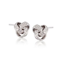 Ross-Simons travels the world to find beautiful, high-quality styles at the best prices. A bit of diamond sparkle adds presence to these petite earrings of 14kt white gold. The pretty knots are tied with three diamonds each. Post backs. Width - 1/4". Each Ross-Simons item arrives in a fine jewelry presentation box. Shop Ross-Simons jewelry risk-free as all items include a 30-day, 100% money-back guarantee.Stone InformationGem Type 1 - DiamondStone Cut 1 - Good-CutStone Color 1 - HStone Clarity 1 - SI3Stone Shape 1 - Round-ShapeStone Creation Method 1 - NaturalStone Treatment Method 1 - Not-TreatedStone Weight 1 - 0.05 CaratsNumber Of Stones 1 - 6