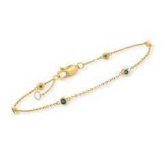 Ross-Simons is the authority on luxury classics. RS Pure. Modern designs that complete your outfit and complement your personality. When your stack needs a pop of color, add this chic bracelet to the mix! It features 0.20 ct. t.w. sapphire rounds stationed along a cable chain in polished 14kt yellow gold. Includes a 1/2" extender. Lobster clasp, sapphire station bracelet. Each Ross-Simons item arrives in a fine jewelry presentation box. Shop Ross-Simons jewelry risk-free as all items include a 30-day, 100% money-back guarantee.Stone InformationGem Type 1 - SapphireStone Cut 1 - Good-CutStone Color 1 - BlueStone Clarity 1 - BlueStone Shape 1 - Round-ShapeStone Creation Method 1 - NaturalStone Treatment Method 1 - HeatedStone Weight 1 - 0.20 CaratsNumber Of Stones 1 - 6