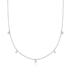 A trusted jeweler in 1952, Ross-Simons is dedicated to quality and value. Layered or worn alone, this necklace adds a touch of sparkle that every outfit needs. It features dangling stations of 0.10 ct. t.w. round brilliant-cut diamonds in polished sterling silver. Cable chain with a 2" extender. Lobster clasp, diamond drop station necklace. Each Ross-Simons item arrives in a fine jewelry presentation box. Shop Ross-Simons jewelry risk-free as all items include a 30-day, 100% money-back guarantee.Stone InformationGem Type 1 - DiamondStone Cut 1 - Good-CutStone Color 1 - I-JStone Clarity 1 - I2Stone Shape 1 - Round-ShapeStone Creation Method 1 - NaturalStone Treatment Method 1 - Not-TreatedStone Weight 1 - 0.10 CaratsNumber Of Stones 1 - 5