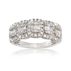 Ross-Simons is the authority on fashionable must-haves. A burst of pure sparkle, 1.00 ct. t.w. round and baguette diamonds are arranged in a lush five stone-inspired design. Set in polished sterling silver. Would make a romantic offering for a very special occasion. Diamond ring. Each Ross-Simons item arrives in a fine jewelry presentation box. Shop Ross-Simons jewelry risk-free as all items include a 30-day, 100% money-back guarantee.Stone InformationGem Type 1 - DiamondStone Cut 1 - Good-CutStone Color 1 - H-IStone Clarity 1 - I3Stone Shape 1 - Round-ShapeStone Creation Method 1 - NaturalStone Treatment Method 1 - Not-TreatedStone Weight 1 - 0.60 CaratsNumber Of Stones 1 - 74Gem Type 2 - DiamondStone Cut 2 - Good-CutStone Color 2 - H-IStone Clarity 2 - I3Stone Shape 2 - Baguette-ShapeStone Creation Method 2 - NaturalStone Treatment Method 2 - Not-TreatedStone Weight 2 - 0.40 CaratsNumber Of Stones 2 - 25