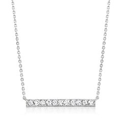 A top-rated jeweler since 1952, Ross-Simons travels the world to find high-quality styles at the best prices. Opt for a classic style that looks great matched with any look! Crafted of polished sterling silver, the center bar sparkles with 0.50 ct. t.w. round brilliant-cut diamonds suspending from a cable chain with a 2" extender. A chic necklace that looks great layered with other favorites. Springring clasp, diamond bar necklace. Necklace drop length - 1/8 inch long. Necklace drop width - 1 inch wide. Each Ross-Simons item arrives in a fine jewelry presentation box. Shop Ross-Simons jewelry risk-free as all items include a 30-day, 100% money-back guarantee.Stone InformationGem Type 1 - DiamondStone Cut 1 - Good-CutStone Color 1 - I-JStone Clarity 1 - I2Stone Shape 1 - Round-ShapeStone Creation Method 1 - NaturalStone Treatment Method 1 - Not-TreatedStone Weight 1 - 0.50 CaratsNumber Of Stones 1 - 11