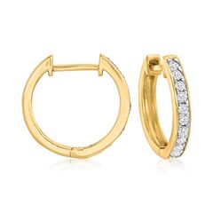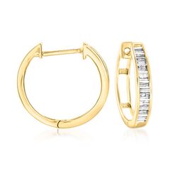 Ross-Simons presents contemporary styles with a timeless appeal. Sophisticated tapered baguettes, totaling .20 carats, add an icy glow to these sunny 14kt yellow gold huggie hoop earrings. Such a beloved style, huggie hoop earrings know how to deliver substantial sparkle alongside approachable, everyday wearability. Hanging length is 1/2". Hinged post, diamond huggie hoop earrings. Each Ross-Simons item arrives in a fine jewelry presentation box. Shop Ross-Simons jewelry risk-free as all items include a 30-day, 100% money-back guarantee.Stone InformationGem Type 1 - DiamondStone Cut 1 - Good-CutStone Color 1 - I-JStone Clarity 1 - I2Stone Shape 1 - Special-Cut-ShapeStone Creation Method 1 - NaturalStone Treatment Method 1 - Not-TreatedStone Weight 1 - 0.20 CaratsNumber Of Stones 1 - 32
