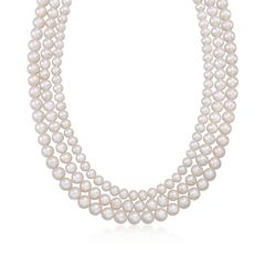 Ross-Simons travels the world to find beautiful, high-quality styles at the best prices. The lush look of this 5-8mm graduated three-strand cultured pearl necklace makes it a sophisticated daytime choice and a truly elegant evening accessory. Necklace presented with a sterling silver lobster clasp. Each Ross-Simons item arrives in a fine jewelry presentation box. Shop Ross-Simons jewelry risk-free as all items include a 30-day, 100% money-back guarantee.Pearl InformationPearl Type 1 - Freshwater-CulturedPearl Minimum Color 1 - WhitePearl Lustre 1 - Medium-LusterPearl Shape 1 - OvalPearl Uniformity 1 - GoodPearl Surface Blemishes 1 - Moderately BlemishedPearl Stringing Method 1 - Moderately BlemishedSize Per Pearl 1 - 5-6mmNumber Of Pearls 1 - 229Pearl Type 2 - Freshwater-CulturedPearl Minimum Color 2 - WhitePearl Lustre 2 - Medium-LusterPearl Shape 2 - OvalPearl Uniformity 2 - GoodPearl Surface Blemishes 2 - Moderately BlemishedPearl Stringing Method 2 - Moderately BlemishedSize Per Pearl 2 - 6-7mmNumber Of Pearls 2 - 229Pearl Type 3 - Freshwater-CulturedPearl Minimum Color 3 - WhitePearl Lustre 3 - Medium-LusterPearl Shape 3 - OvalPearl Uniformity 3 - GoodPearl Surface Blemishes 3 - Moderately BlemishedPearl Stringing Method 3 - Moderately BlemishedSize Per Pearl 3 - 7-8mmNumber Of Pearls 3 - 229