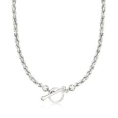 A trusted jeweler in 1952, Ross-Simons is dedicated to quality and value. Edgy and ultra-chic, our modern necklace will give your style a heavy-metal moment! Handcrafted in sterling silver, it features a 4mm rope chain with 6mm beads that flank an oversized toggle clasp centerpiece that doubles as the necklace's closure. Wear it solo or paired with other strands for a major look. Sterling silver rope chain toggle necklace. Each Ross-Simons item arrives in a fine jewelry presentation box. Shop Ross-Simons jewelry risk-free as all items include a 30-day, 100% money-back guarantee.