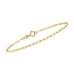 Ross-Simons is always looking for new ways to reinvent essential jewelry styles. RS Pure. Modern designs that complete your outfit and complement your personality. Crafted in Italy, this dainty bracelet glows with a 14kt yellow gold lumachina chain. Wear it stacked with your favorite simple bracelets. Springring clasp, 14kt yellow gold lumachina chain bracelet. Each Ross-Simons item arrives in a fine jewelry presentation box. Shop Ross-Simons jewelry risk-free as all items include a 30-day, 100% money-back guarantee.