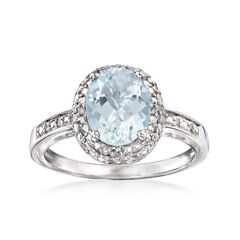 Established in 1952, Ross-Simons presents contemporary styles with a timeless appeal. A fashion statement for all seasons, this sophisticated and romantic 1.50 carat aquamarine ring speaks volumes. The twinkling diamond accents make this a chic and icy combo. Sterling silver ring. Each Ross-Simons item arrives in a fine jewelry presentation box. Shop Ross-Simons jewelry risk-free as all items include a 30-day, 100% money-back guarantee.Stone InformationGem Type 1 - AquamarineStone Cut 1 - Good-CutStone Color 1 - BlueStone Clarity 1 - BlueStone Shape 1 - Oval-ShapeStone Creation Method 1 - NaturalStone Treatment Method 1 - Heat-TreatedStone Weight 1 - 1.50 CaratsNumber Of Stones 1 - 1Gem Type 2 - DiamondStone Cut 2 - Good-CutStone Color 2 - H-IStone Clarity 2 - I1Stone Shape 2 - Round-ShapeStone Creation Method 2 - NaturalStone Treatment Method 2 - Not-TreatedStone Weight 2 - 0.06 CaratsNumber Of Stones 2 - 16