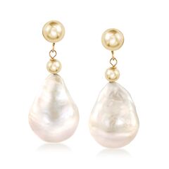 Established in 1952, Ross-Simons presents contemporary styles with a timeless appeal. Classic pearls meet bold shapes for a modern and artful twist! Our drop earrings feature 12-14mm cultured freshwater baroque pearls accented with 4-6mm 14kt yellow gold round beads. Baroque pearls used in this design are unique and may differ from each other within the pair – a wonderful feature for the jewelry lover with an affinity for naturally eclectic and organic-style luxuries. Hanging length is 1 1/8". Post/clutch, white baroque pearl drop earrings. Each Ross-Simons item arrives in a fine jewelry presentation box. Shop Ross-Simons jewelry risk-free as all items include a 30-day, 100% money-back guarantee.Pearl InformationPearl Type 1 - Freshwater-CulturedPearl Minimum Color 1 - WhitePearl Lustre 1 - Medium-LusterPearl Shape 1 - BaroquePearl Uniformity 1 - GoodPearl Surface Blemishes 1 - Moderately BlemishedPearl Stringing Method 1 - Moderately BlemishedSize Per Pearl 1 - 12-14mmNumber Of Pearls 1 - 2