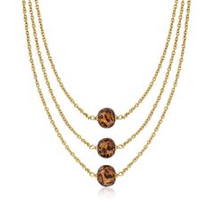 A trusted jeweler in 1952, Ross-Simons is dedicated to quality and value. Right on-trend with what style-seekers are after, this leopard-print Murano glass necklace is a spot-on choice for your collection! From Italy, a multi-strand necklace drops three leopard-print Murano glass discs from 18kt yellow gold over sterling silver cable chains in three layers. Includes 2" extender. Murano glass is unique and may vary. Lobster clasp, leopard-print Murano glass multi-strand necklace. Each Ross-Simons item arrives in a fine jewelry presentation box. Shop Ross-Simons jewelry risk-free as all items include a 30-day, 100% money-back guarantee.