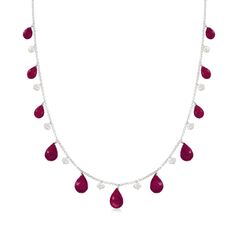 Ross-Simons is the authority on fashionable must-haves. The combination is fiery in this 4-5mm cultured freshwater pearl and 45.00 ct. t.w. ruby drop necklace, it's the perfect addition to your jewelry box to add some glow and glam! Springring clasp, sterling silver necklace. Each Ross-Simons item arrives in a fine jewelry presentation box. Shop Ross-Simons jewelry risk-free as all items include a 30-day, 100% money-back guarantee.Stone InformationGem Type 1 - RubyStone Cut 1 - Good-CutStone Color 1 - RedStone Clarity 1 - RedStone Shape 1 - TeardropStone Creation Method 1 - NaturalStone Treatment Method 1 - Heat-TreatedStone Weight 1 - 45.00 CaratsNumber Of Stones 1 - 11