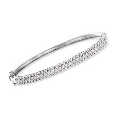 Ross-Simons travels the world to find beautiful, high-quality styles at the best prices. You'll love our glimmering diamond bangle! In polished sterling silver, it flashes and flickers with three rows of round brilliant-cut diamonds, totaling 0.75 carats. Wear it to the office or to date night. Double-latch safety. Box clasp, diamond bangle bracelet. Each Ross-Simons item arrives in a fine jewelry presentation box. Shop Ross-Simons jewelry risk-free as all items include a 30-day, 100% money-back guarantee.Stone InformationGem Type 1 - DiamondStone Cut 1 - Good-CutStone Color 1 - I-JStone Clarity 1 - I3Stone Shape 1 - Round-ShapeStone Creation Method 1 - NaturalStone Treatment Method 1 - Not-TreatedStone Weight 1 - 0.75 CaratsNumber Of Stones 1 - 71