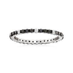 Ross-Simons travels the world to find beautiful, high-quality styles at the best prices. Our eternity band boasts the sleek sparkle of alternating .37 ct. t.w. black diamonds and .13 ct. t.w. white diamonds in a chic contrast. Set in polished 14kt white gold, it's the perfect ring for stacking! Black diamonds are set in black rhodium for a seamless look. 1/16" wide. White and black diamond ring. Each Ross-Simons item arrives in a fine jewelry presentation box. Shop Ross-Simons jewelry risk-free as all items include a 30-day, 100% money-back guarantee.Stone InformationGem Type 1 - DiamondStone Cut 1 - Good-CutStone Color 1 - BlackStone Clarity 1 - BlackStone Shape 1 - Round-ShapeStone Creation Method 1 - NaturalStone Treatment Method 1 - Not-TreatedStone Weight 1 - 0.37-0.38 CaratsNumber Of Stones 1 - 21-36Gem Type 2 - DiamondStone Cut 2 - Good-CutStone Color 2 - I-JStone Clarity 2 - I2Stone Shape 2 - Round-ShapeStone Creation Method 2 - NaturalStone Treatment Method 2 - Not-TreatedStone Weight 2 - 0.13-0.12 CaratsNumber Of Stones 2 - 7-12