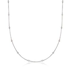 Established in 1952, Ross-Simons brings jewelry classics into the modern era. Our classic station necklace is sparkling with 0.50-1.00 ct. t.w. round brilliant-cut diamonds, bezel-set in sterling silver on a cable chain. It is a must-have foundation piece for your collection and the perfect choice for layering! Lobster clasp, diamond station necklace. Each Ross-Simons item arrives in a fine jewelry presentation box. Shop Ross-Simons jewelry risk-free as all items include a 30-day, 100% money-back guarantee.Stone InformationGem Type 1 - DiamondStone Cut 1 - Good-CutStone Color 1 - I-JStone Clarity 1 - I3Stone Shape 1 - Round-ShapeStone Creation Method 1 - NaturalStone Treatment Method 1 - Not-TreatedStone Weight 1 - 0.50-1.00 CaratsNumber Of Stones 1 - 14-28