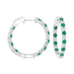 Ross-Simons is the authority on luxury classics. Indulge in the luxury of emeralds and diamonds at an affordable price! These gorgeous inside-outside hoop earrings feature dazzling 1.00 ct. t.w. round brilliant-cut diamonds alternating with verdant .80 ct. t.w. emeralds in sterling silver. Hanging length is 7/8". Hinged post, diamond and emerald inside-outside hoop earrings. Each Ross-Simons item arrives in a fine jewelry presentation box. Shop Ross-Simons jewelry risk-free as all items include a 30-day, 100% money-back guarantee.Stone InformationGem Type 1 - EmeraldStone Cut 1 - Good-CutStone Color 1 - GreenStone Clarity 1 - I2Stone Shape 1 - Round-ShapeStone Creation Method 1 - NaturalStone Treatment Method 1 - OiledStone Weight 1 - 0.80 CaratsNumber Of Stones 1 - 20Gem Type 2 - DiamondStone Cut 2 - Good-CutStone Color 2 - I-JStone Clarity 2 - I3Stone Shape 2 - Round-ShapeStone Creation Method 2 - NaturalStone Treatment Method 2 - Not-TreatedStone Weight 2 - 1.00 CaratsNumber Of Stones 2 - 20