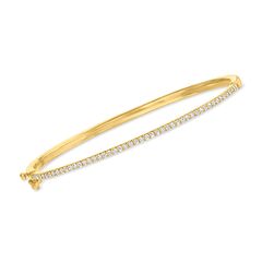 Established in 1952, Ross-Simons presents contemporary styles with a timeless appeal. Sparkle is a necessity when it comes to perfecting your signature stack. This dreamy bangle bracelet is dazzled with 0.50 ct. t.w. round diamonds in 18kt yellow gold over sterling silver. Hinged with a figure 8 safety. Box clasp, diamond bangle bracelet. Each Ross-Simons item arrives in a fine jewelry presentation box. Shop Ross-Simons jewelry risk-free as all items include a 30-day, 100% money-back guarantee.Stone InformationGem Type 1 - DiamondStone Cut 1 - Good-CutStone Color 1 - H-IStone Clarity 1 - I2Stone Shape 1 - Round-ShapeStone Creation Method 1 - NaturalStone Treatment Method 1 - Not-TreatedStone Weight 1 - 0.50 CaratsNumber Of Stones 1 - 49