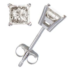 Ships within 1 dayElegant princess cut diamond stud earrings 14K white or yellow gold. The sparkling natural diamonds are set in 4 prong basket setting with push backs (butterfly). Total carat weight vary from 1/4 to 2 cttw. Diamond earrings are handcrafted in New York. Gift box is included with purchase of these earrings.Stone Type - Natural DiamondMetal - 14K White or Yellow GoldDiamond Carat Weight - 1/5 to 2 cttwDiamond Cut - PrincessDiamond Color - M-NDiamond Clarity - I1-I2Diamonds - 2Vir Jewels 14K White Gold Stud Earrings For Female AdultBirthstone Month - April